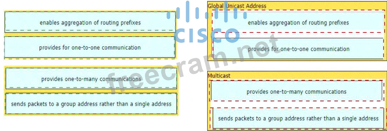 Drag and drop the characteristic from the left onto the IPv6 address type on the right.