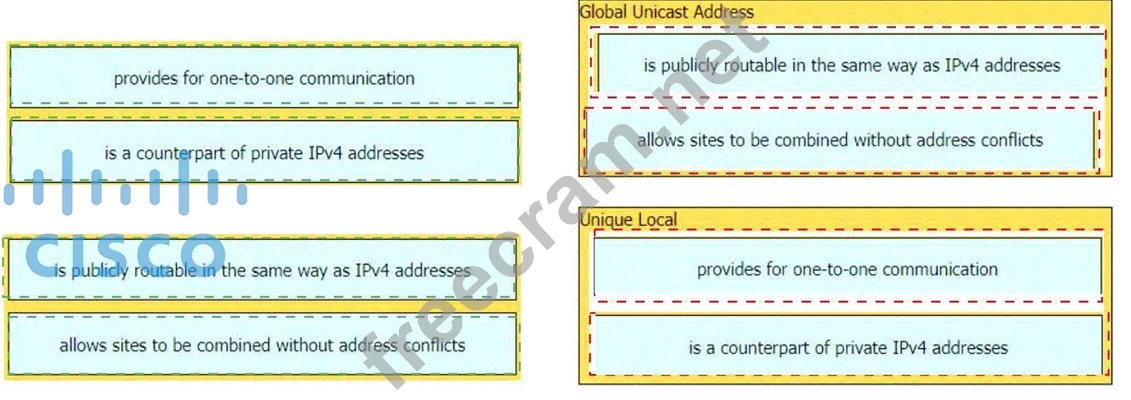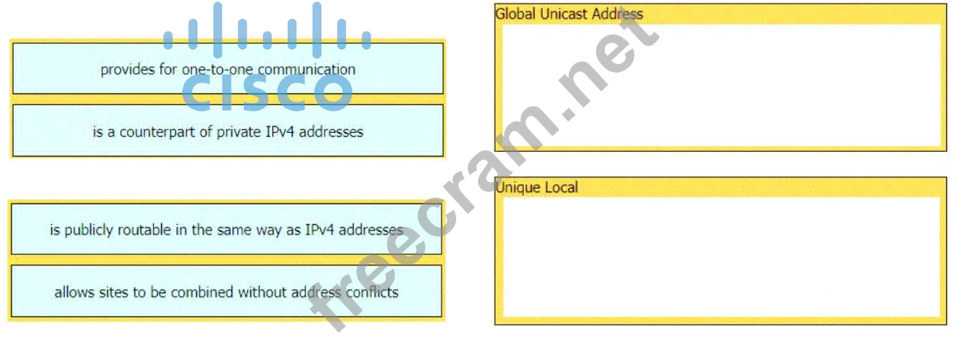 Drag and drop the characteristic from the left onto the IPv6 address type on the right.