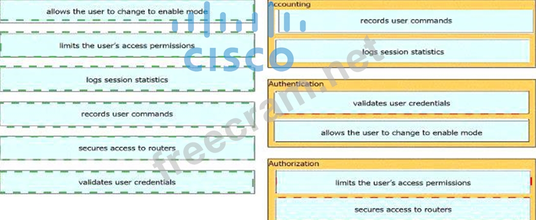 Question 405: Drag and drop the AAA functions from the left onto the corre...