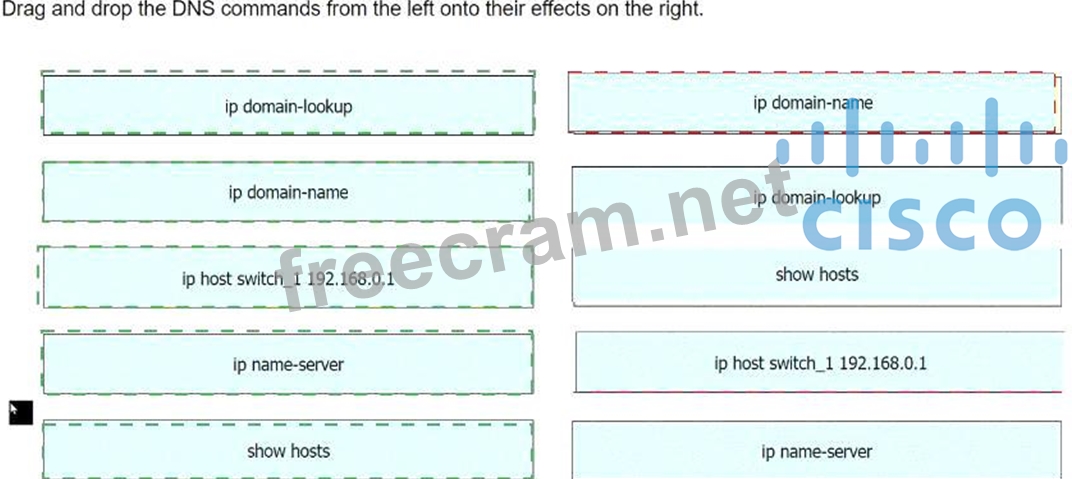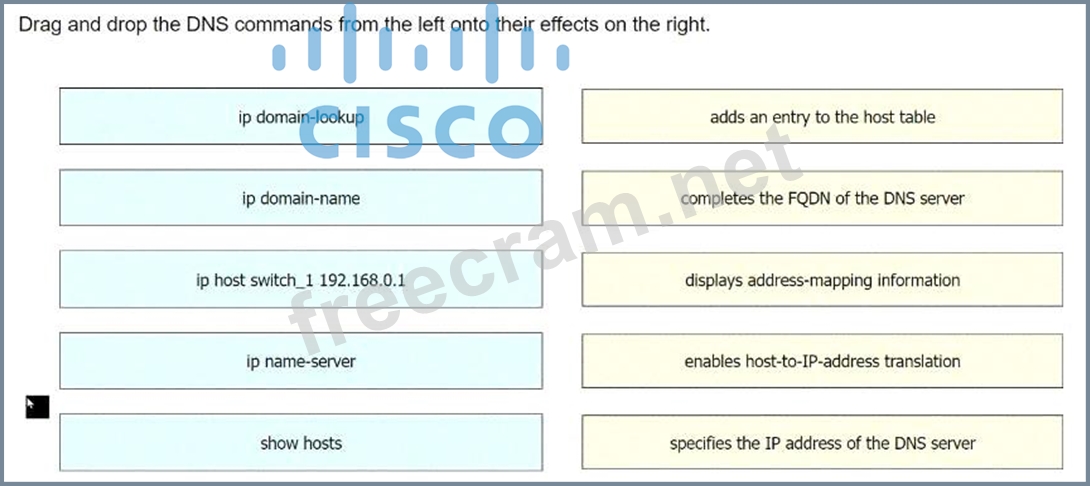 Drag and drop the DNS commands from the left onto their effects on the right.