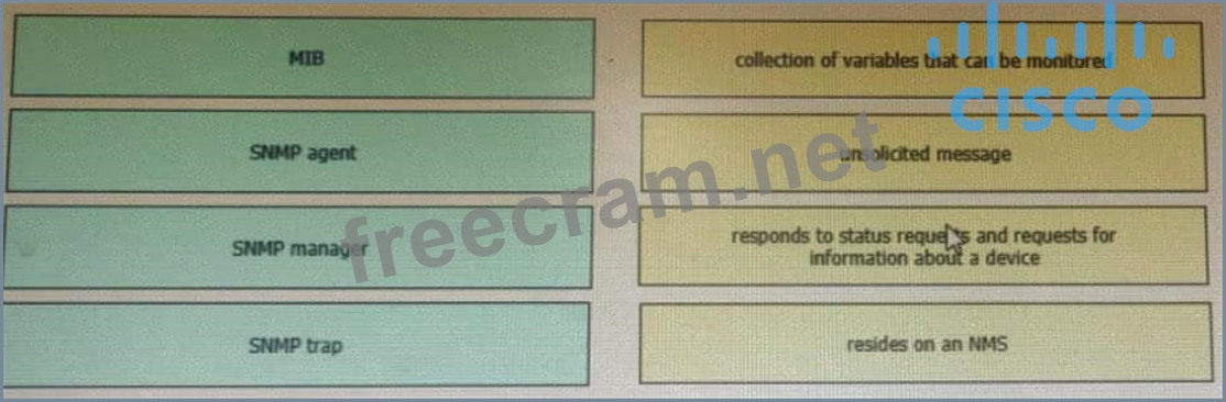 Question 53: Drag and drop the SNMP components from the left onto the des...