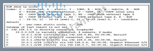 Question 7: Refer to the exhibit. (Exhibit) Which route does R1 select f...