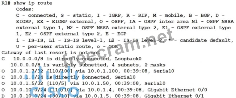 Question 7: Refer to the exhibit. (Exhibit) Which route does R1 select f...