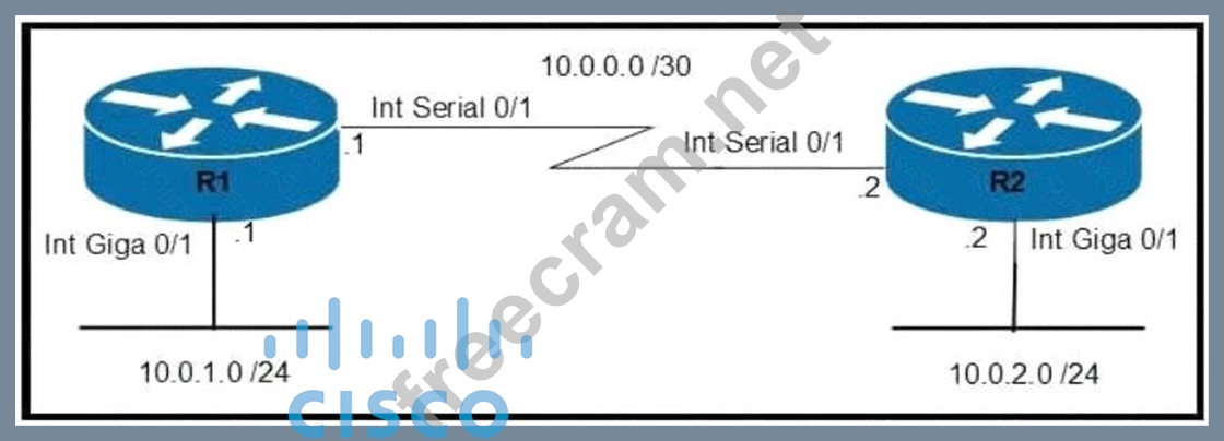 Which command configures OSPF on the point-to-point link between routers R1 and R2?