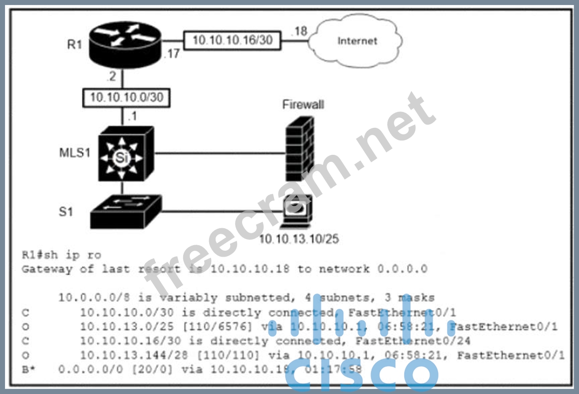 Question 7: Refer to the exhibit. (Exhibit) Which route does R1 select f...