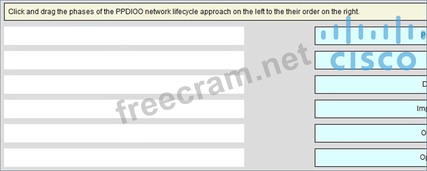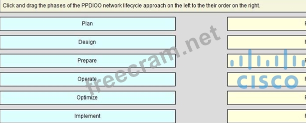 Click and drag the phases of the PPDIOO network lifecycle approach on the left to their order on the right.