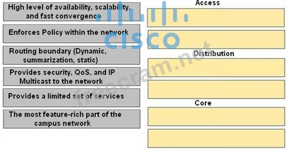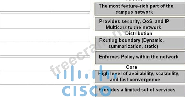 Drag the characteristics of the traditional campus network on the left to the most appropriate hierarchical network layer on the right.