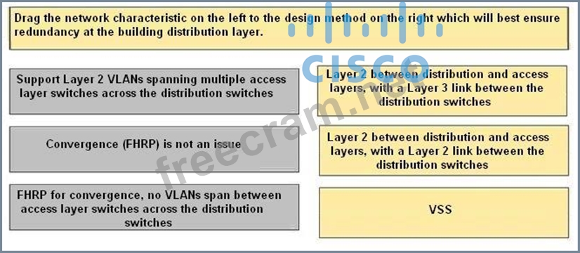 -> FHRP for convergence, no VLANs span between access layer switches across the distribution switches VSS -> Convergence (FHRP) is not an issue