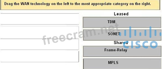 Drag the WAN technology on the left to the most appropriate category on the right.