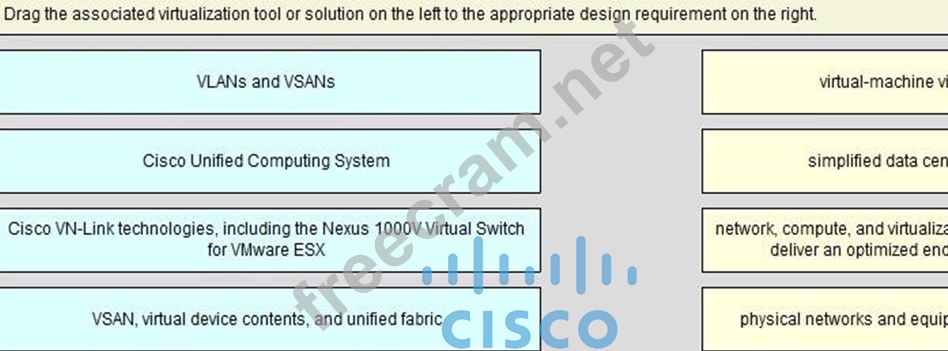 Drag the associated virtualization tool or solution on the left to the appropriate design requirement on the right.