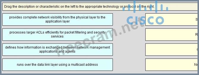 Drag the description or characteristic on the left to the appropriate technology or protocol on the right.