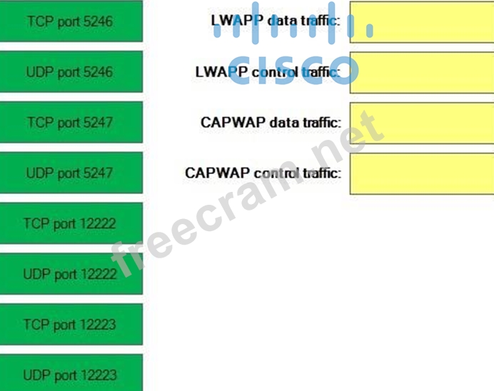 Control and Provisioning of Wireless Access Points (CAPWAP) uses UDP port 5246 for control traffic and UDP port 5247 for data traffic. CAPWAP is a standards-based version of LWAPP. Cisco WLC devices that run software version 5.2 and later use CAPWAP instead of LWAPP.