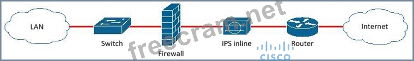 Because the IPS in this example is configured to operate in inline mode, it functions similarly to a Layer 2 bridge in that it passes traffic through to destinations on the same subnet. Because all monitored traffic passes through the IPS, it can block malicious traffic, such as an atomic or single-packet attack, before it passes onto the network. However, an inline IPS also adds latency to traffic flows on the network because it must analyze each packet before passing it to its destination.