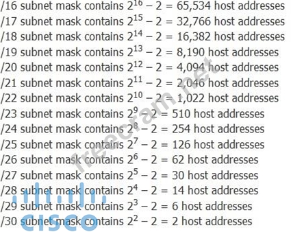 Although it is important to learn the formula for calculating valid host addresses, the following list demonstrates the relationship between common subnet masks and valid host addresses: