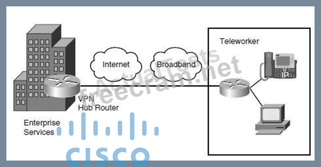 The Cisco Virtual Office Solution for the Enterprise Teleworker is implemented using the Cisco 800 series ISRs. Each ISR has integrated switch ports that then connect to the user's broadband connection. The solution uses a permanent always-on IPsec VPN tunnel back to the corporate network. This architecture provides for centralized IT security management, corporate-pushed security policies, and integrated identity services. In addition, this solution supports the enterprise teleworker needs through advanced applications such as voice and video. For example, the enterprise teleworker can take advantage of toll bypass, voicemail, and advanced IP phone features not available in the PSTN.