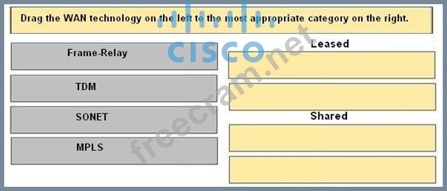 Drag the WAN technology on the left to the most appropriate category on the right.