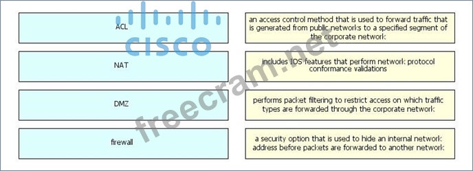 Drag the security term on the left to the matching description on the right.