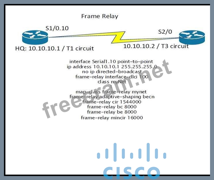 Refer to the exhibit. A network engineer at a technical call center receives a call from a customer complaining that only 56 kbps of data can be transferred over the T1 Frame Relay WAN circuit at a remote site. The engineer checks the Frame Relay switch and confirms that only 56 kbps is being transferred over the circuit. The engineer requests the router configuration of the customer headquarters site router. What is causing this issue to occur?