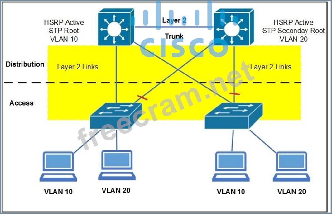 Question 38: Refer to the exhibit. (Exhibit) A standard Layer 2 campus ne...