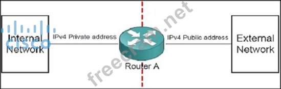 Which functionality must be enabled on router A to connect two networks for translating private addresses into "legal" public addresses on a one-for-one basis?