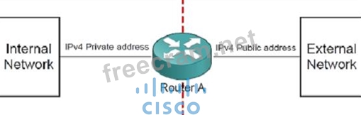 Which functionality must be enabled on router A to connect two networks for translating private addresses into "legal" public addresses on a one-for-one basis?