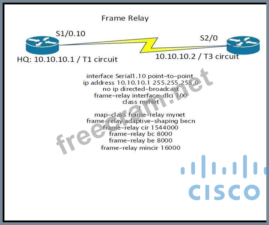 Refer to the exhibit. A network engineer at a technical call center receives a call from a customer complaining that only 56 kbps of data can be transferred over the T1 Frame Relay WAN circuit at a remote site. The engineer checks the Frame Relay switch and confirms that only 56 kbps is being transferred over the circuit. The engineer requests the router configuration of the customer headquarters site router. What is causing this issue to occur?