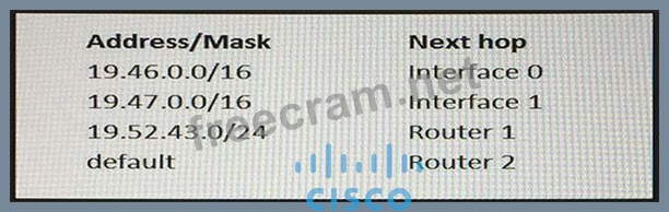 Question 298: (Exhibit) Refer to the exhibit. Which next hop will the rout...