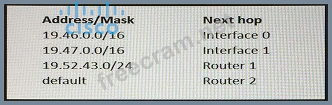 Refer to the exhibit. Which next hop will the router select if given an IP packet with the destination address