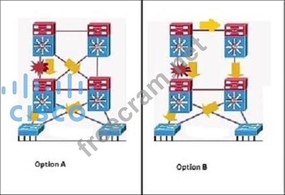 You are designing routing between building distribution switches and campus core switches. Assuming that all links have the same speed, which statement about these designs is true?