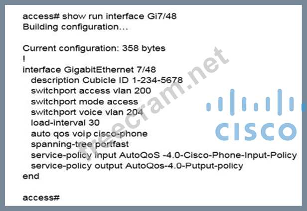 Based on the following output from the access switch, which option is the trust boundry for QoS?