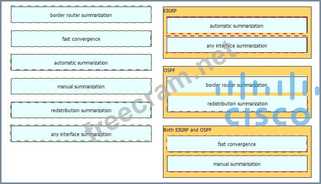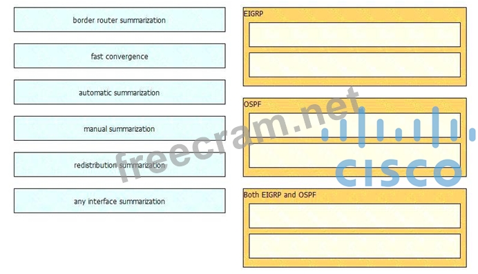 Drag the technology on the left to the matching routing protocol on the right.