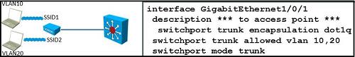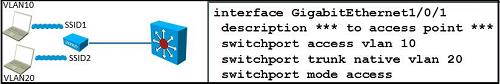 Which scenario represents the correct configuration to support the SSIDs of this autonomous access point?