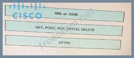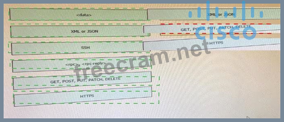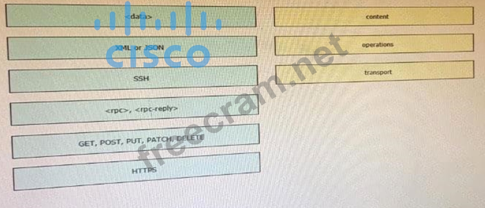 Drag and drop elements of the RESTCONF protocol stack from the left onto the correct description on the right. Not all elements on the left are used.