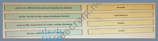 Drag and drop the functionalities from the left onto correct networking devices on the right.