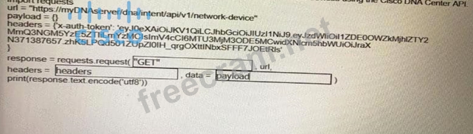 Fill in the blanks to complete the python script to retrieve a list of network devices using the Cisco DNA center API.