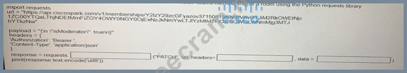 Fill in the blanks to complete the Python script to update the Webex Teams membership of a room using the Python requests library import requests