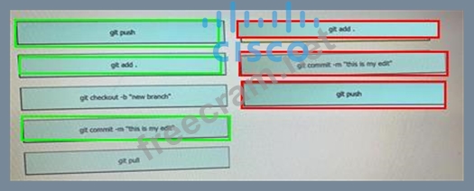 Drag and Drop the GIT commands from the left onto the right that add modified local files to a remote repository. Not all options are used