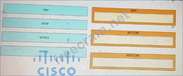 Drag and drop the network automation interfaces from the left onto the transport protocols that they support on the right. Not all options are used.