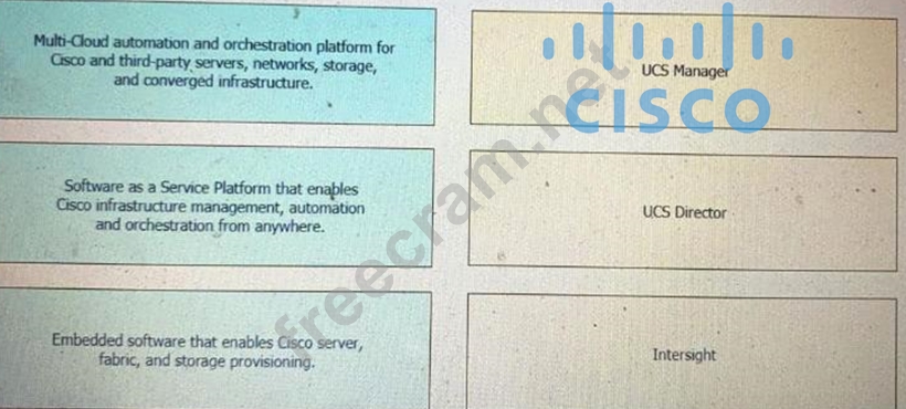 Drag and drop the capability on the left onto the Cisco compute management platform that supports the capability on the right.