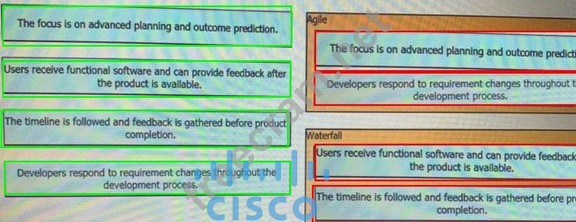 Drag and drop the characteristics from the left onto the corresponding software development methodologies on the right?