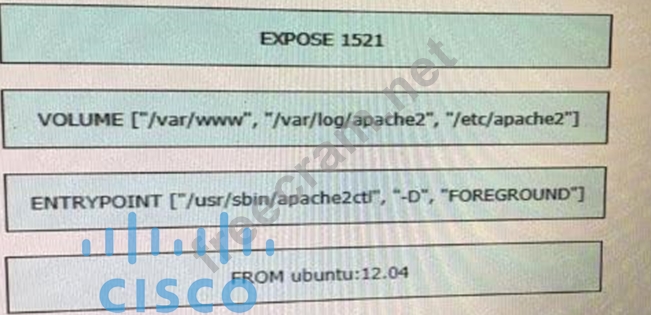Question 83: Drag and drop the Dockerfile instructions from the left onto...