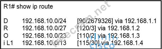 Question 219: (Exhibit) Refer to the exhibit. Which route does R1 select f...
