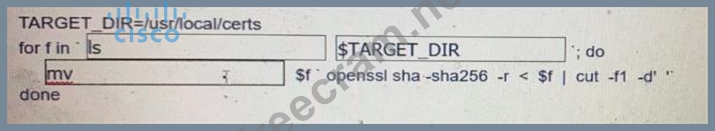 Fill in the blanks to complete the Bash script in which each file in a directory is renamed to Its SHA256 hash?