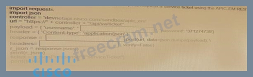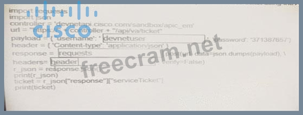 Fill in the blanks to complete the python script to request a service ticket using the APIC-EM rest API for the user "devnetuser".