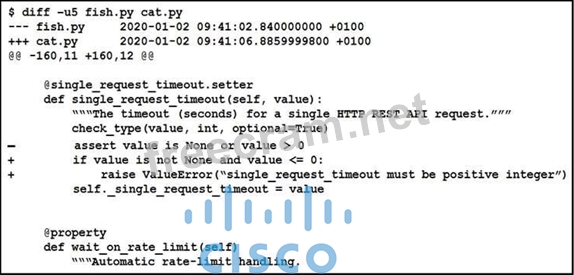Question 87: Refer to the exhibit. (Exhibit) The output of a unified diff...