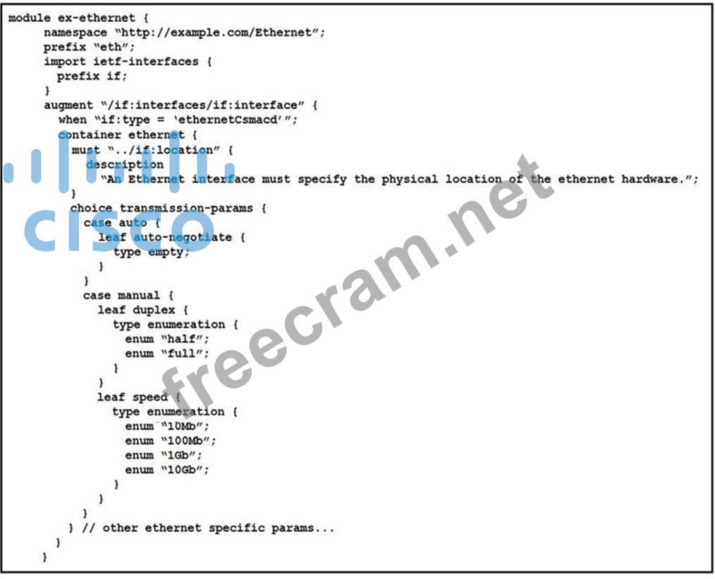 Question 228: Refer to the exhibit. (Exhibit) The definition of the YANG m...
