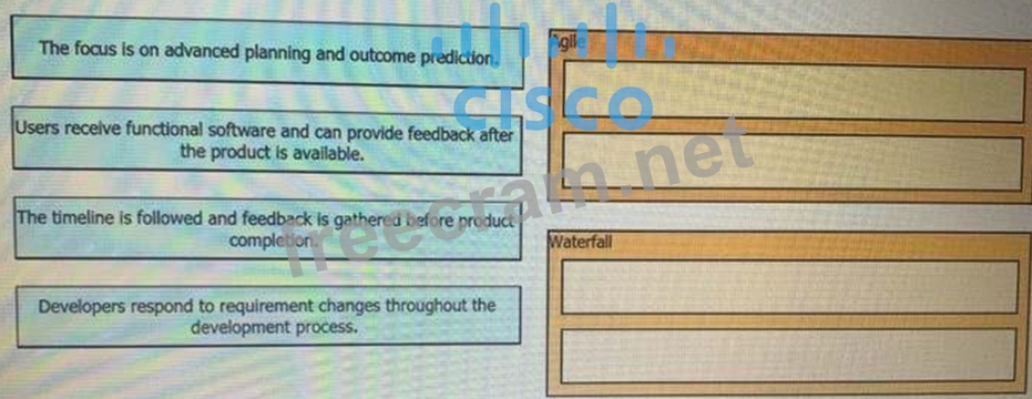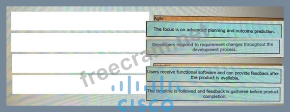 Drag and drop the characteristics from the left onto the corresponding software development methodologies on the right.