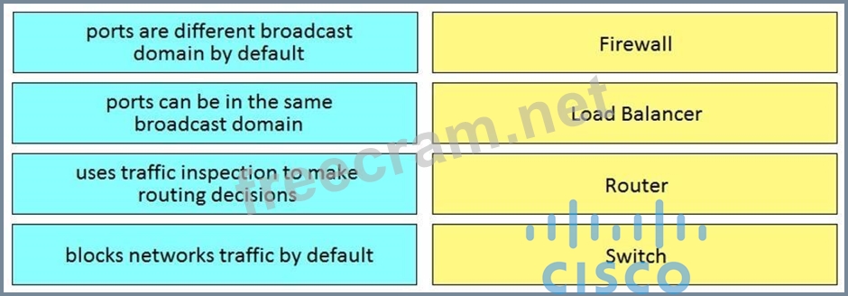Drag and drop the functionalities from the left onto the correct networking devices on the right.