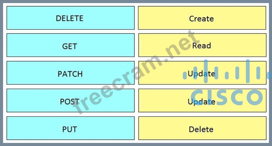 Drag and drop the HTTP methods from the left onto their generally accepted corresponding create, read, update, and delete operations on the right.