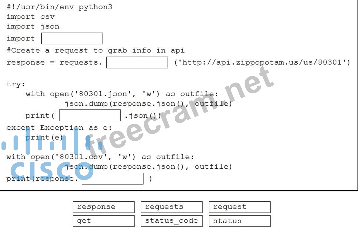 Question 259: Refer to the exhibit. A network engineer wants to use an API...